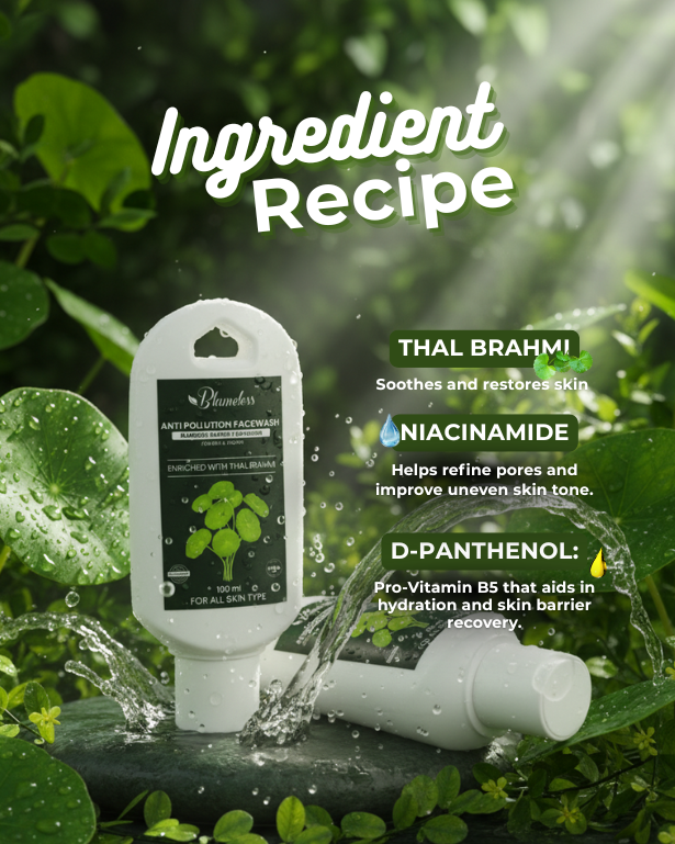 Synergistic Pollution Defense: Enriched with Thal Brahmi to strengthen the skin barrier and the brightening power of a niacinamide face wash to even out skin tone and minimize pores.